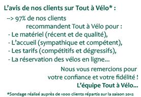 - Les réparations faites en dehors des magasins Tout à Vélo ne seront pas remboursée, sauf accord préalable du loueur